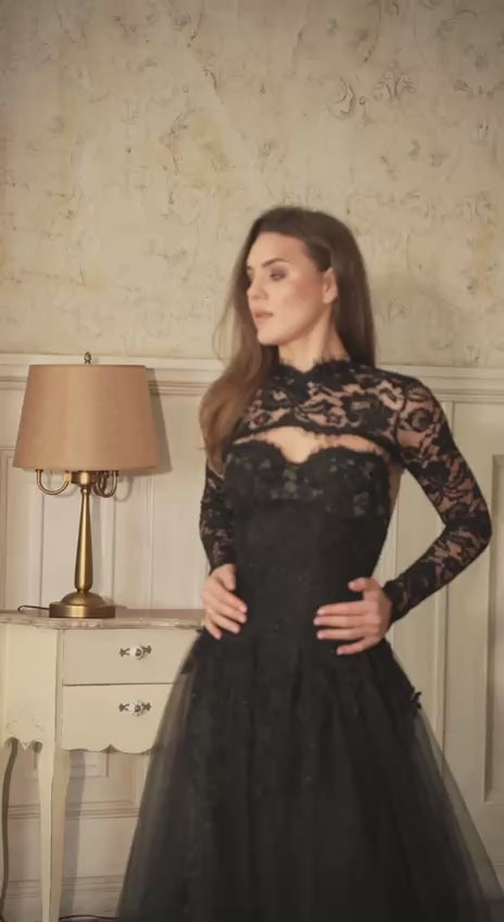 Black Glitter lace wedding dress